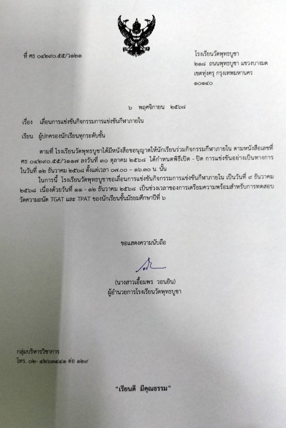 ประกาศ! เลื่อนการจัดกิจกรรมพิธีเปิด-ปิด การแข่งขันกีฬาภายใน