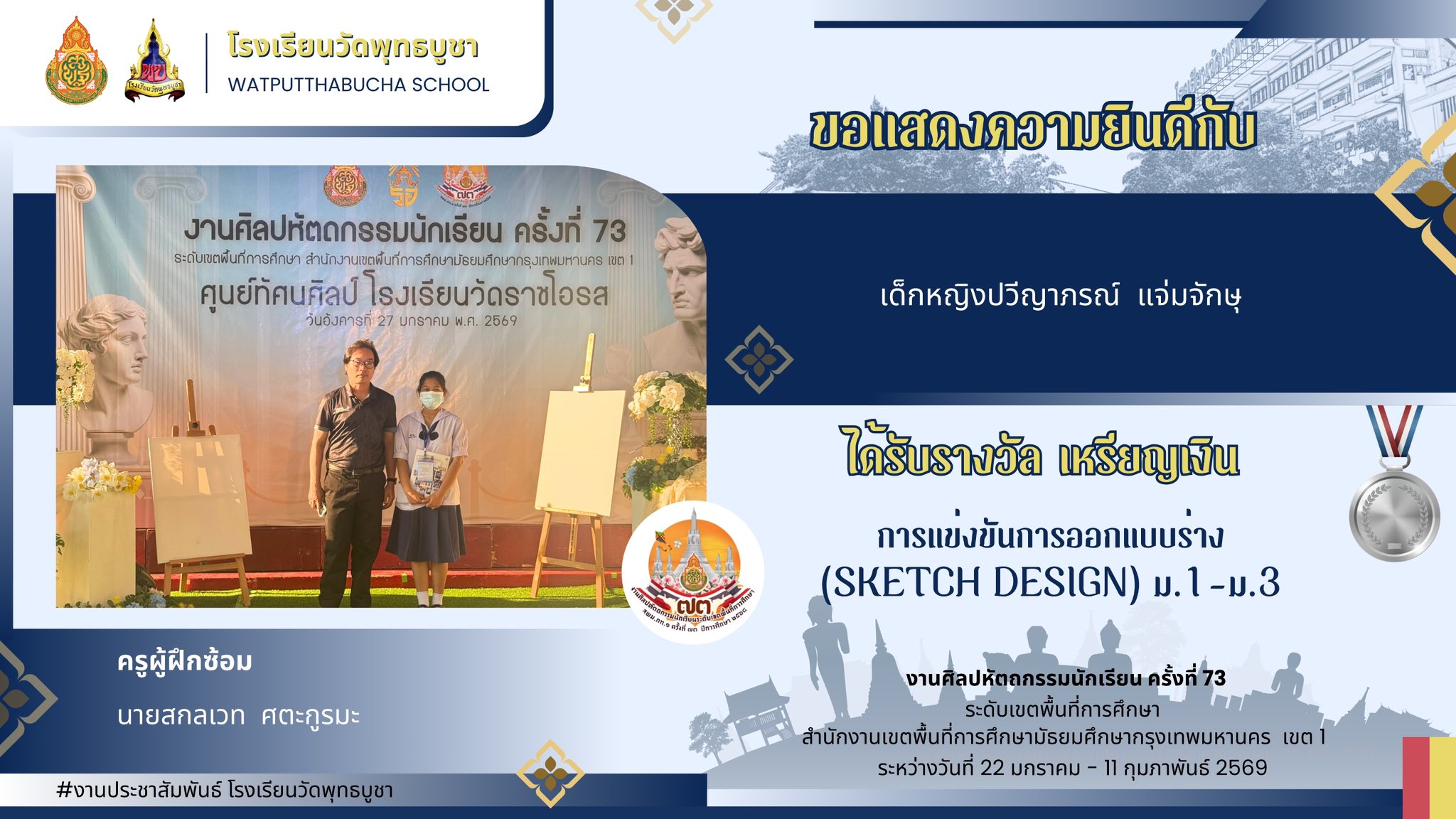ขอแสดงความยินดีกับครูและนักเรียน ในการแข่งขันศิลปหัตถกรรม ครั้งที่ 73