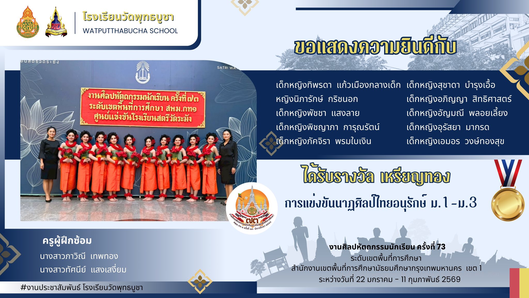 ขอแสดงความยินดีกับครูและนักเรียน ในการแข่งขันศิลปหัตถกรรม ครั้งที่ 73