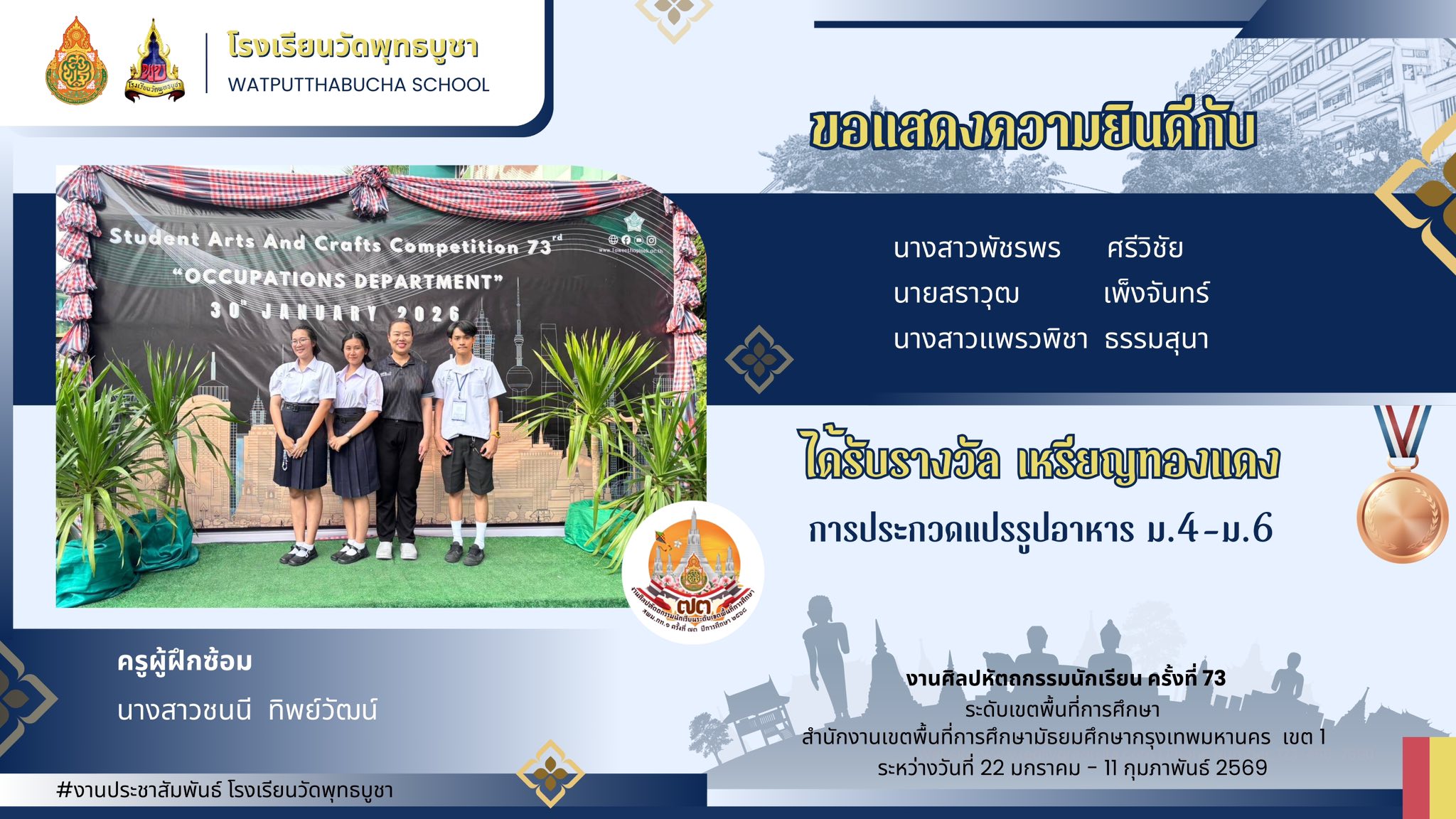 ขอแสดงความยินดีกับครูและนักเรียน ในการแข่งขันศิลปหัตถกรรม ครั้งที่ 73