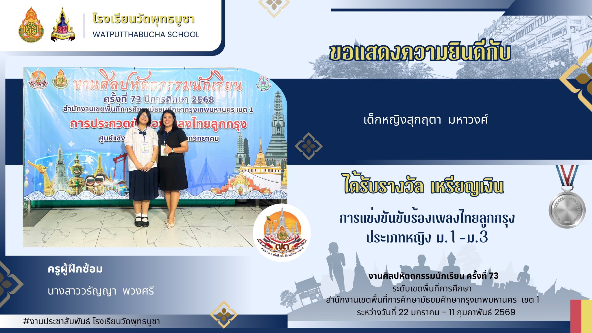 ขอแสดงความยินดีกับครูและนักเรียน ในการแข่งขันศิลปหัตถกรรม ครั้งที่ 73