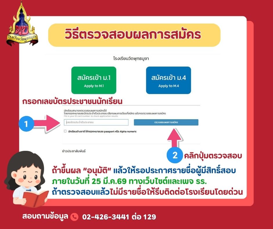ตรวจสอบผลการสมัครเข้าเรียน ม.1 และ ม.4 ห้องเรียนปกติ